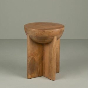 Brown Round Three-Legged Wooden Side Table