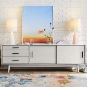 Modern Vannes Solid Wood White Sideboard With 2 Doors and 3 Drawers