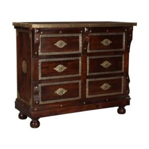 Overlay & Inset Brass Work Solid Wood 6 Drawer Sideboard (2)