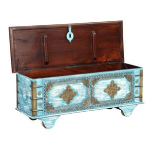 Overlay & Inset Brass Work Solid Wood Blanket Box Blue (1)