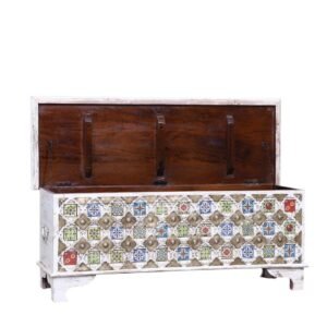 Overlay & Inset Brass Work Solid Wood Chest White-Red (13)