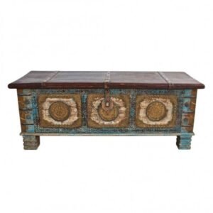 Overlay & Inset Brass Work Solid Wood Chest Blue-Gold (11)