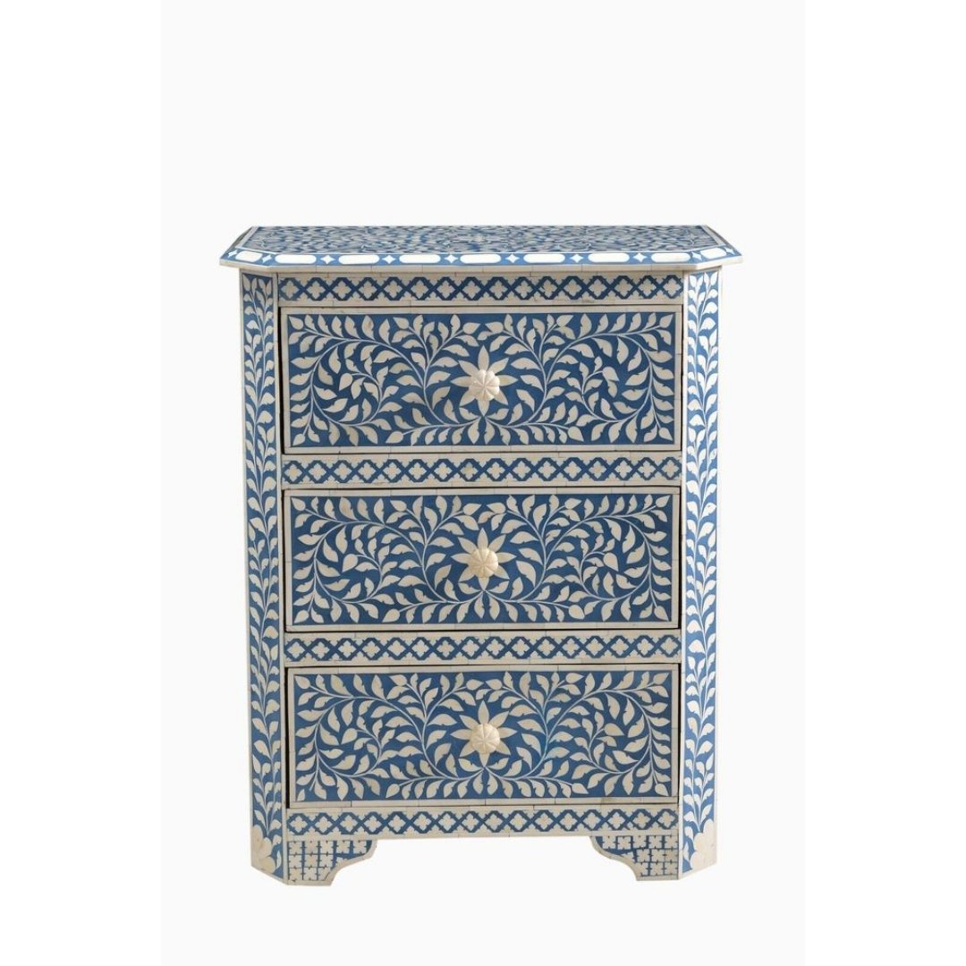 This Listing includes – 1 x Bone Inlay Bedside Table With 3 Drawers