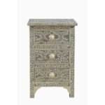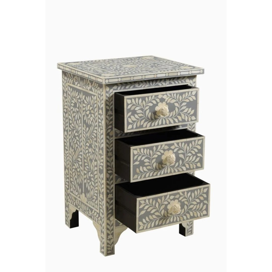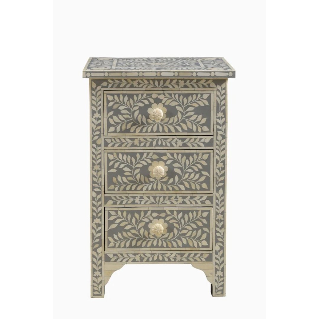 Bone Inlay Grey Floral Bedside Table