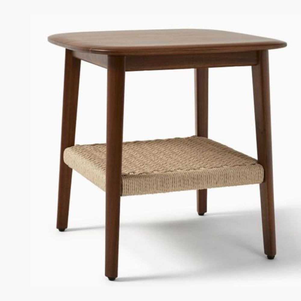 Brown Wooden Side Table with Woven Shelf