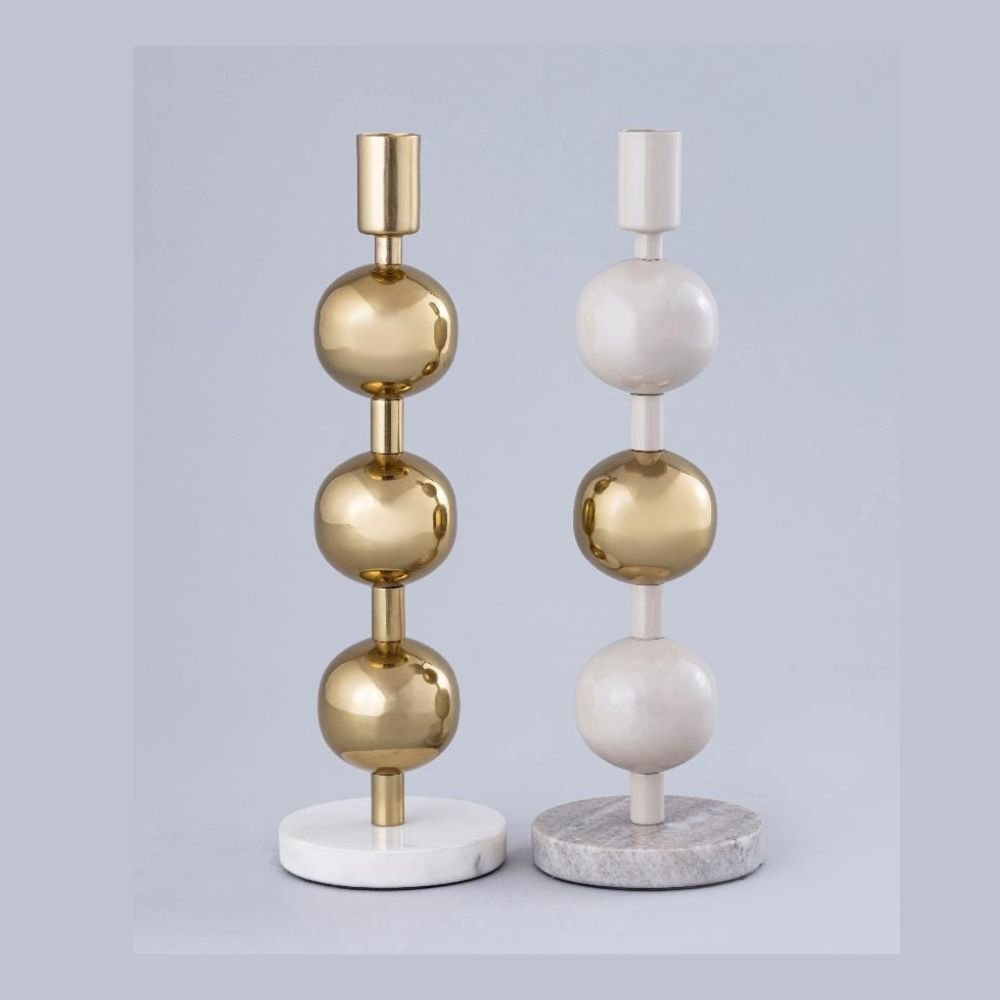 Candle Holder Set – Gold & White Sculptural Accent Stands (Set of 2)