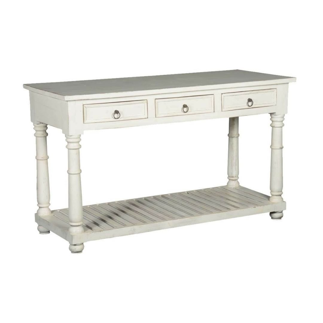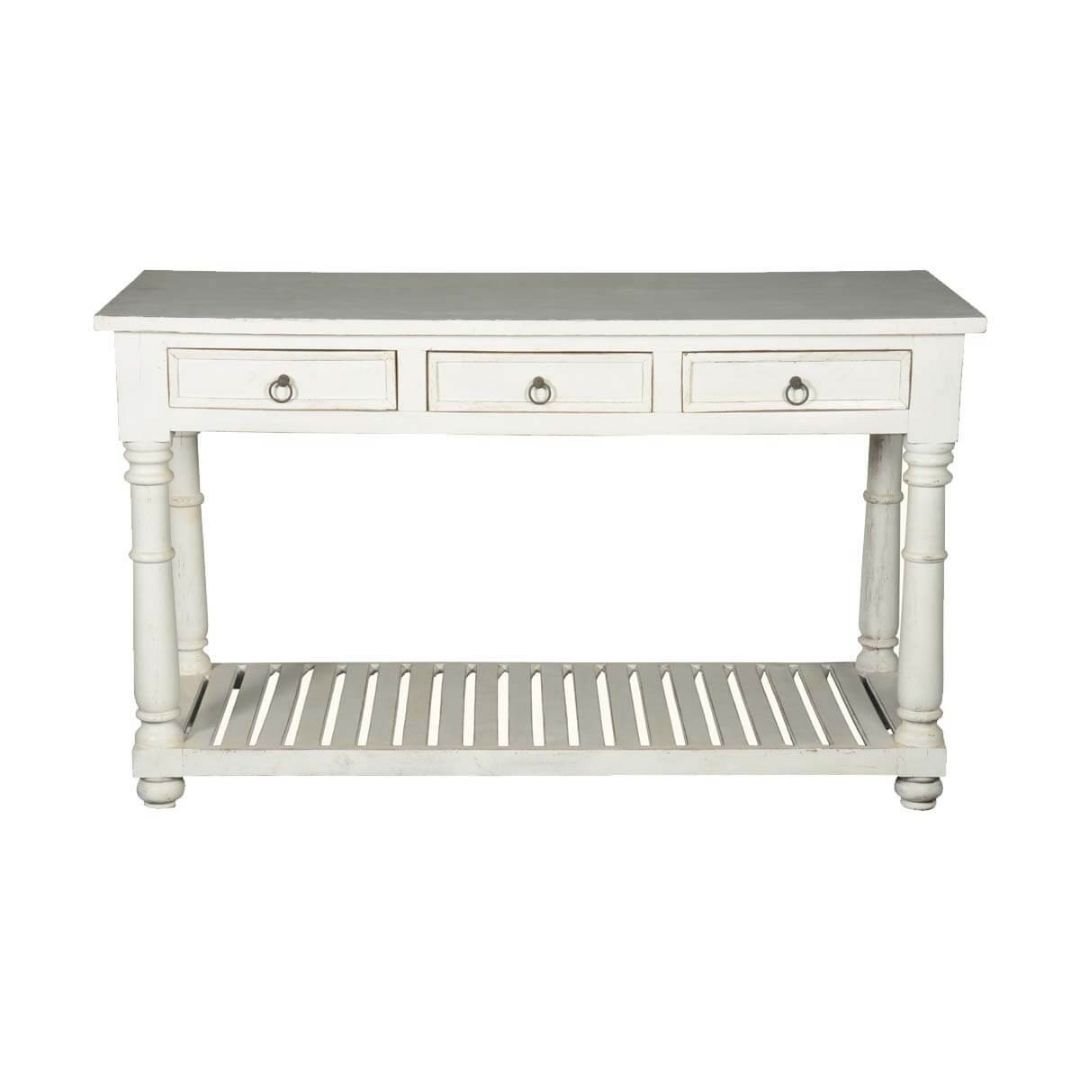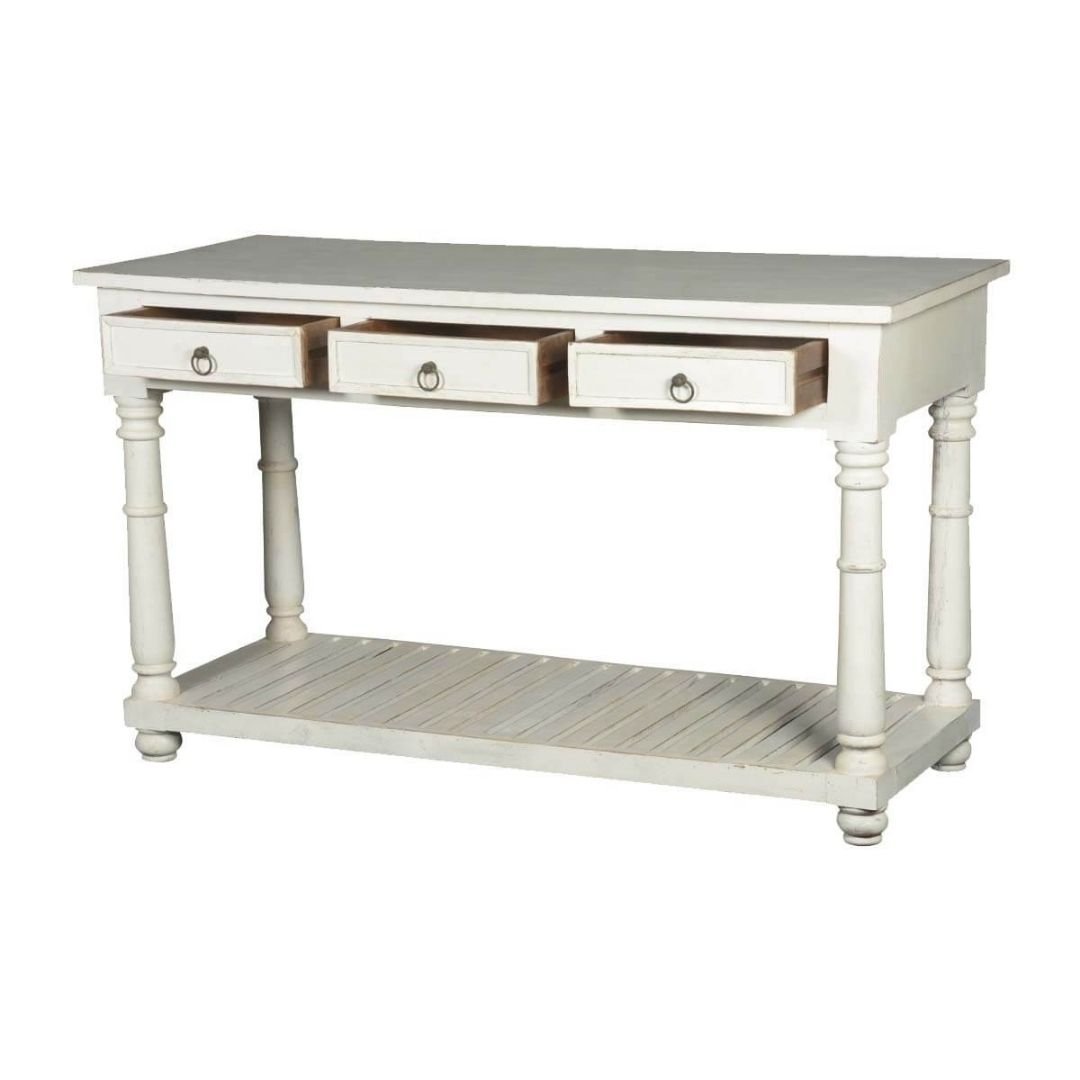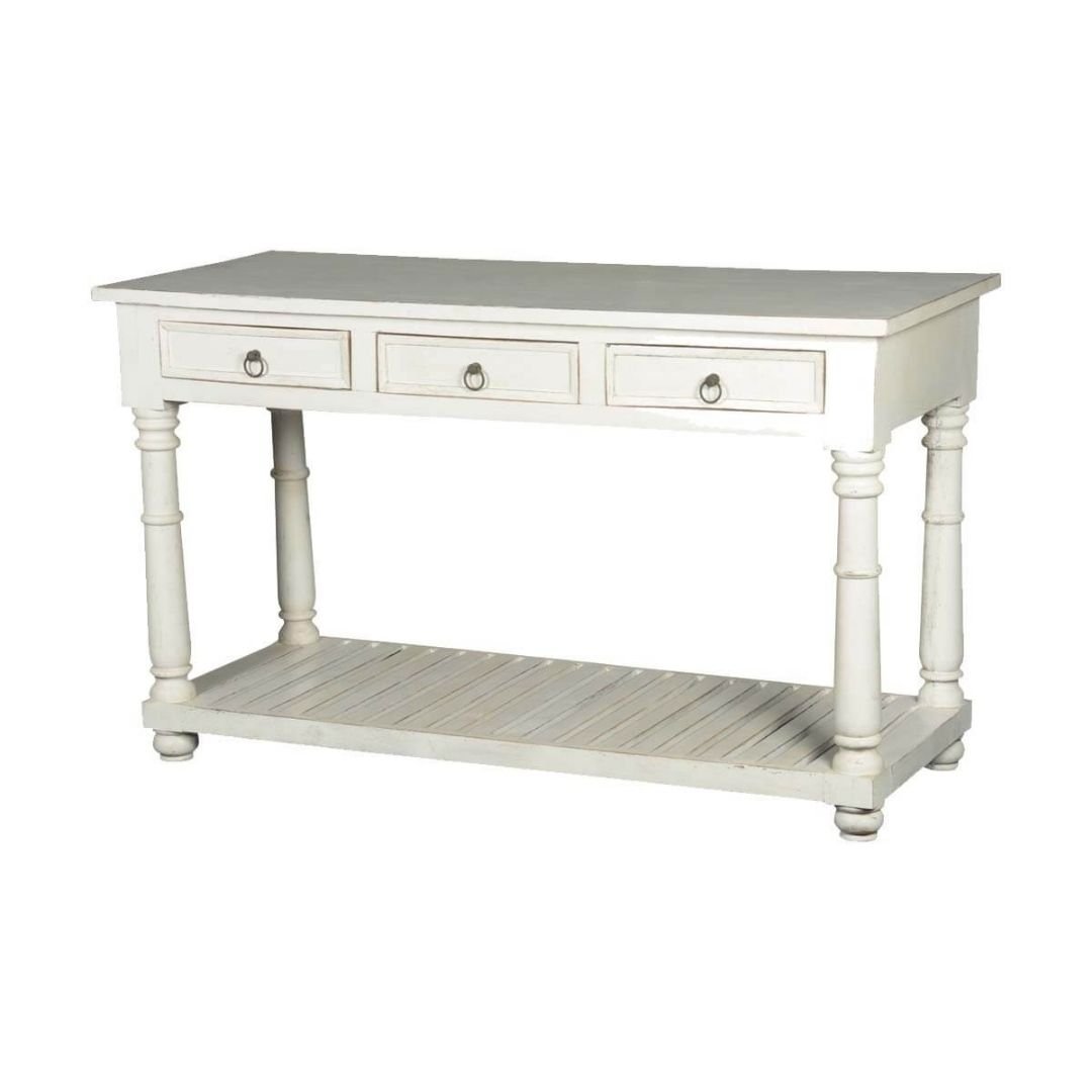 Classic Evergreen Blanc Solid Wood White Hall Table With 3 Drawers