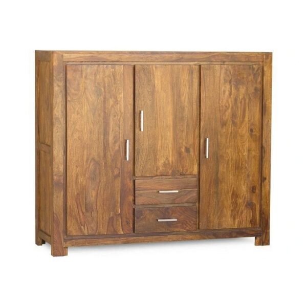 Classic Evergreen Teak Wood Brown Cabinet With 3 Doors and 2 Drawers