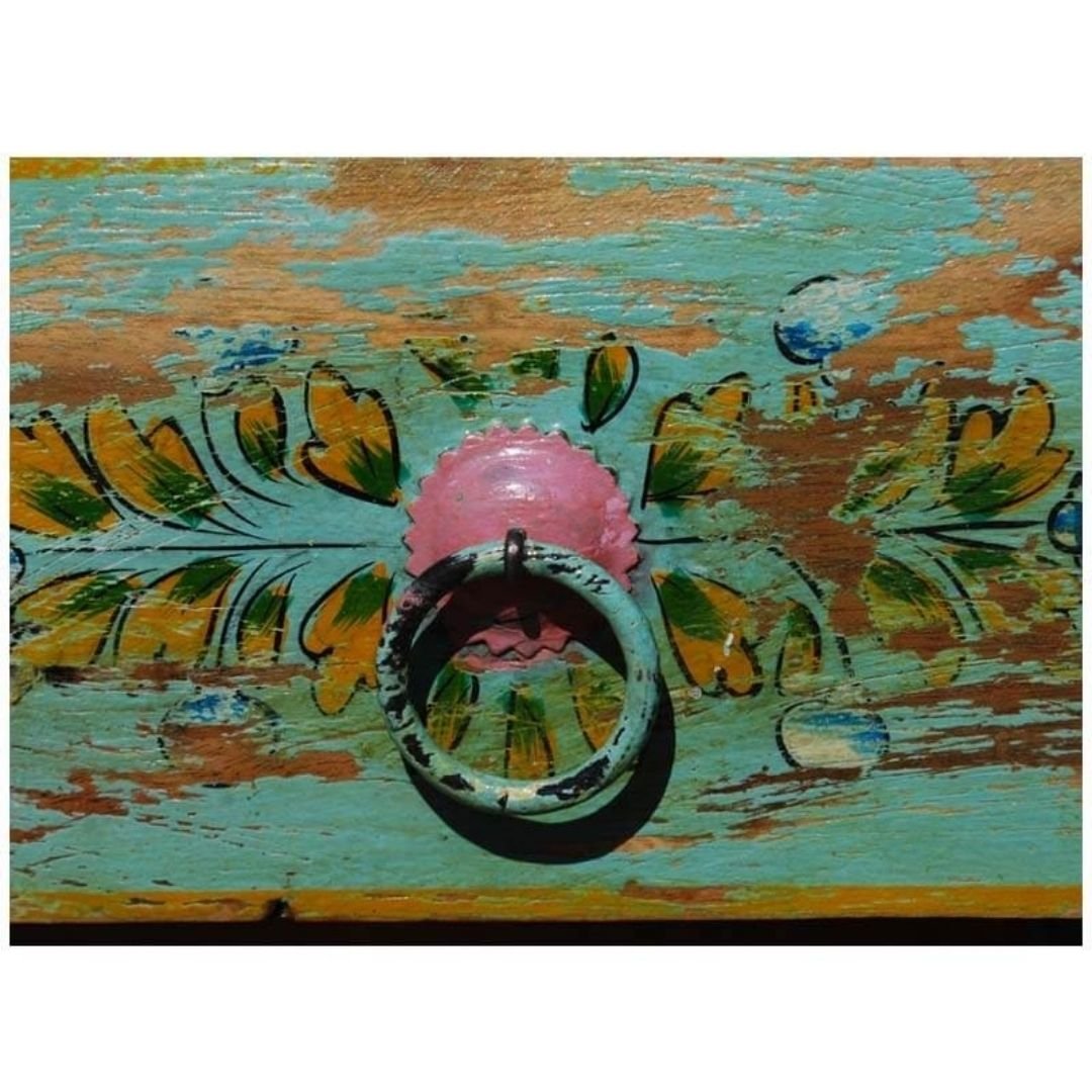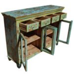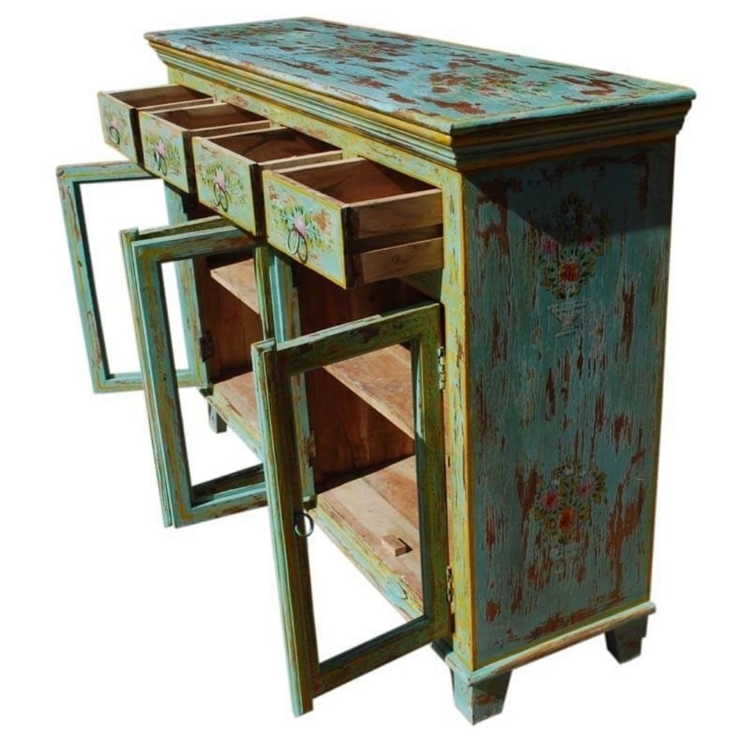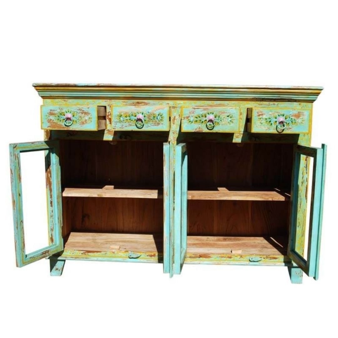 Hand Painted Pandora 4 Drawers Glass Door Sideboard With 4 Drawers and 4 Shelf