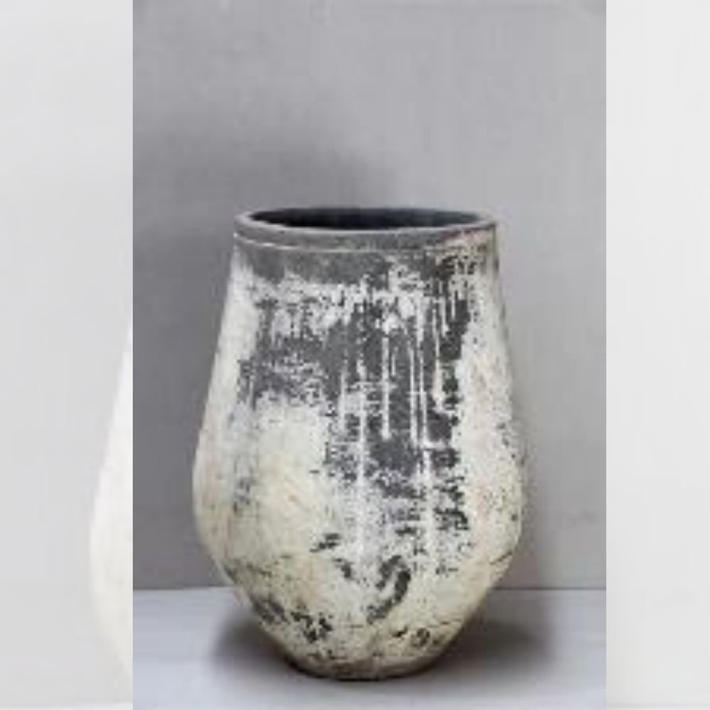 Handcrafted Rustic Terracotta Vase – Distressed Grey Stone Finish