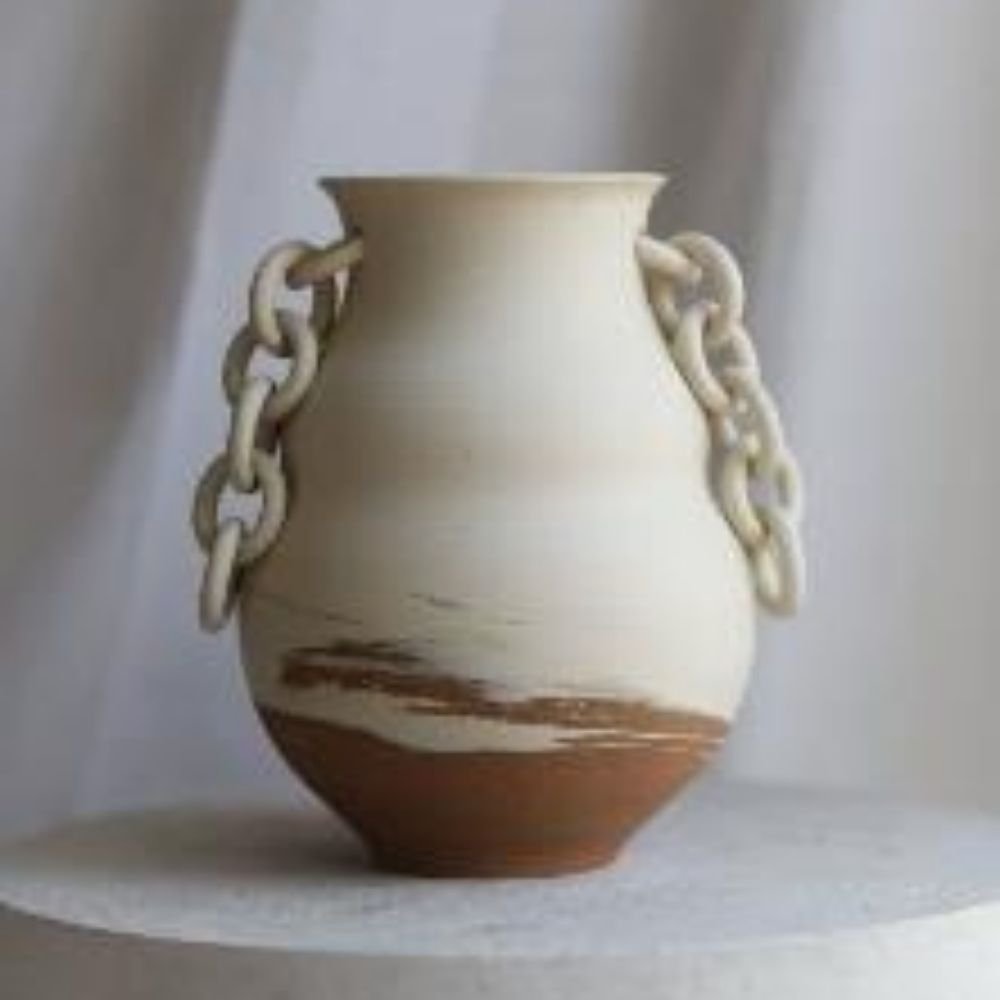 Handcrafted Sculptural Terracotta Vase – Dual-Tone Chain Handle Design
