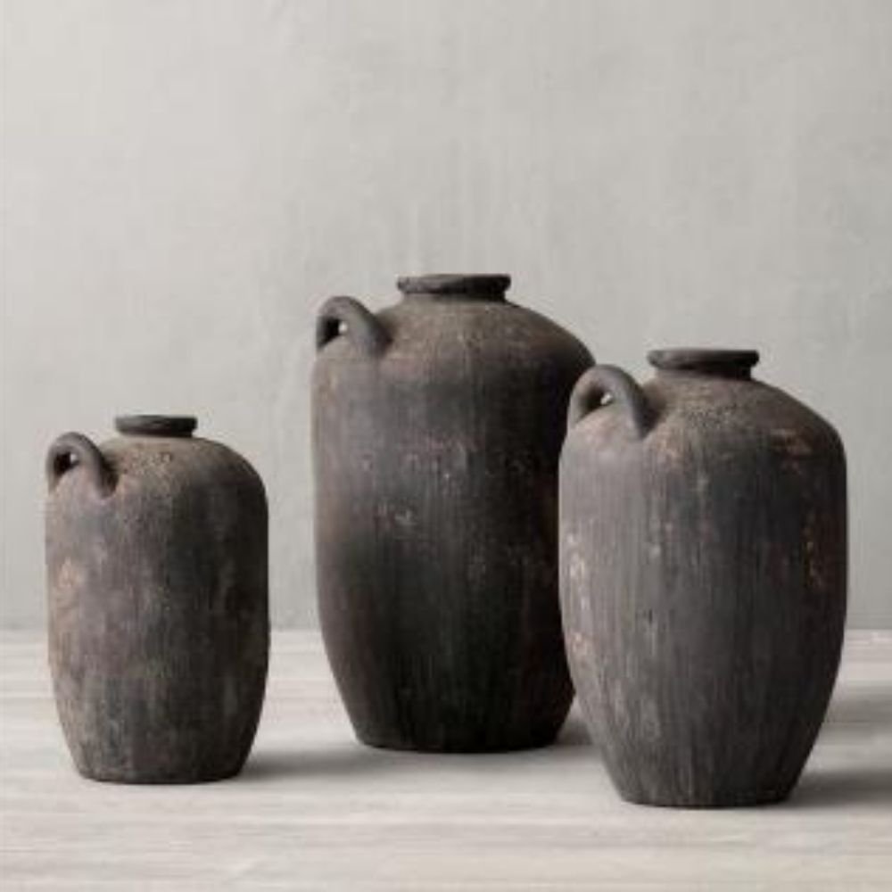 Handcrafted Terracotta Vases – Charcoal Matte Finish Decorative Set