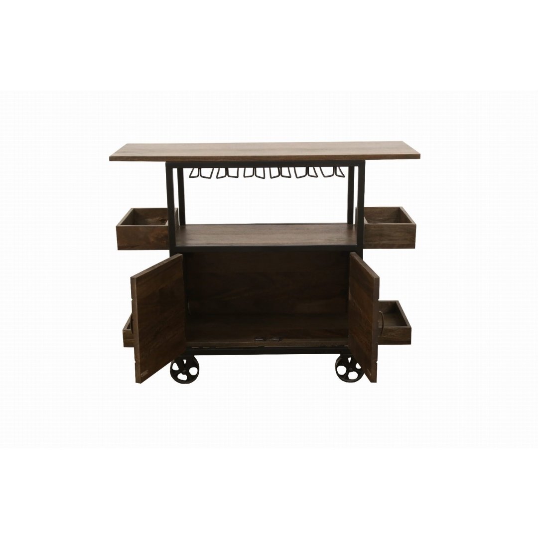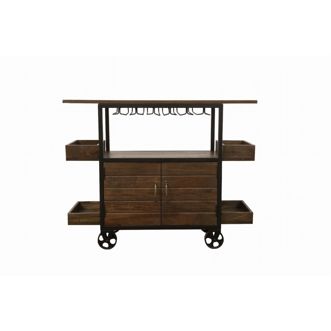 Home Bar Furniture Bar Cabinets/Trolleys Indian Inspired Transport Wheel Natural Wood Cabinets Kitchen