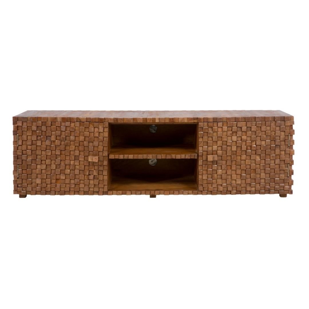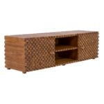 Indian Inspired Tribal Solid Wood Honey TV Unit With 2 Door 2 Shelves
