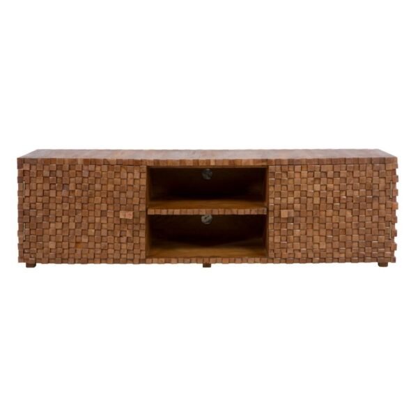 Indian Inspired Tribal Solid Wood Honey TV Unit With 2 Door 2 Shelves