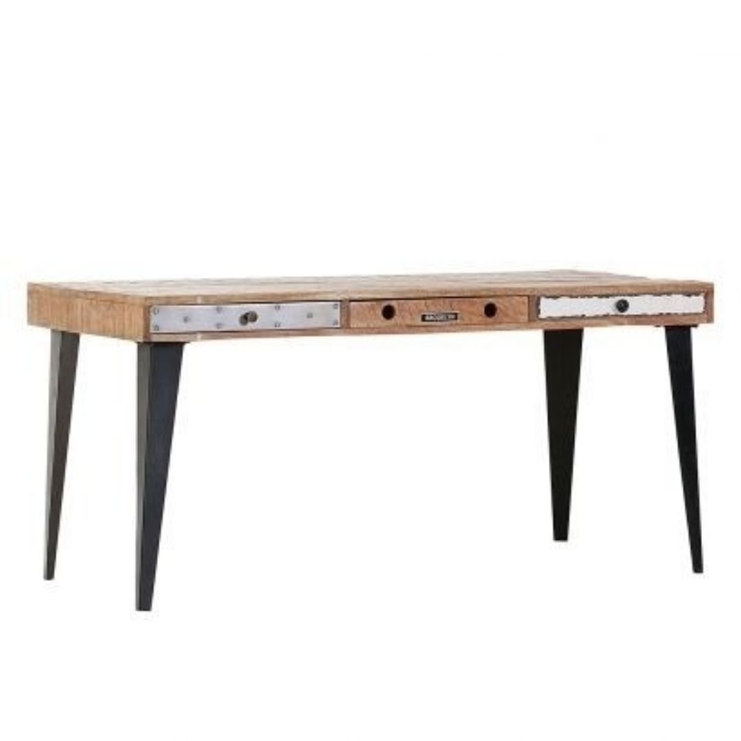 Industrial Lava Solid Wood 3 Drawer Large Hall Table Desk