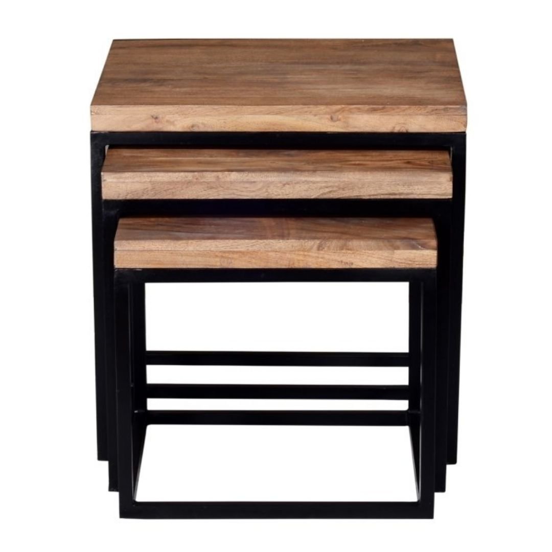 Industrial Lava Solid Wood Set of 3 Nested Side Tables