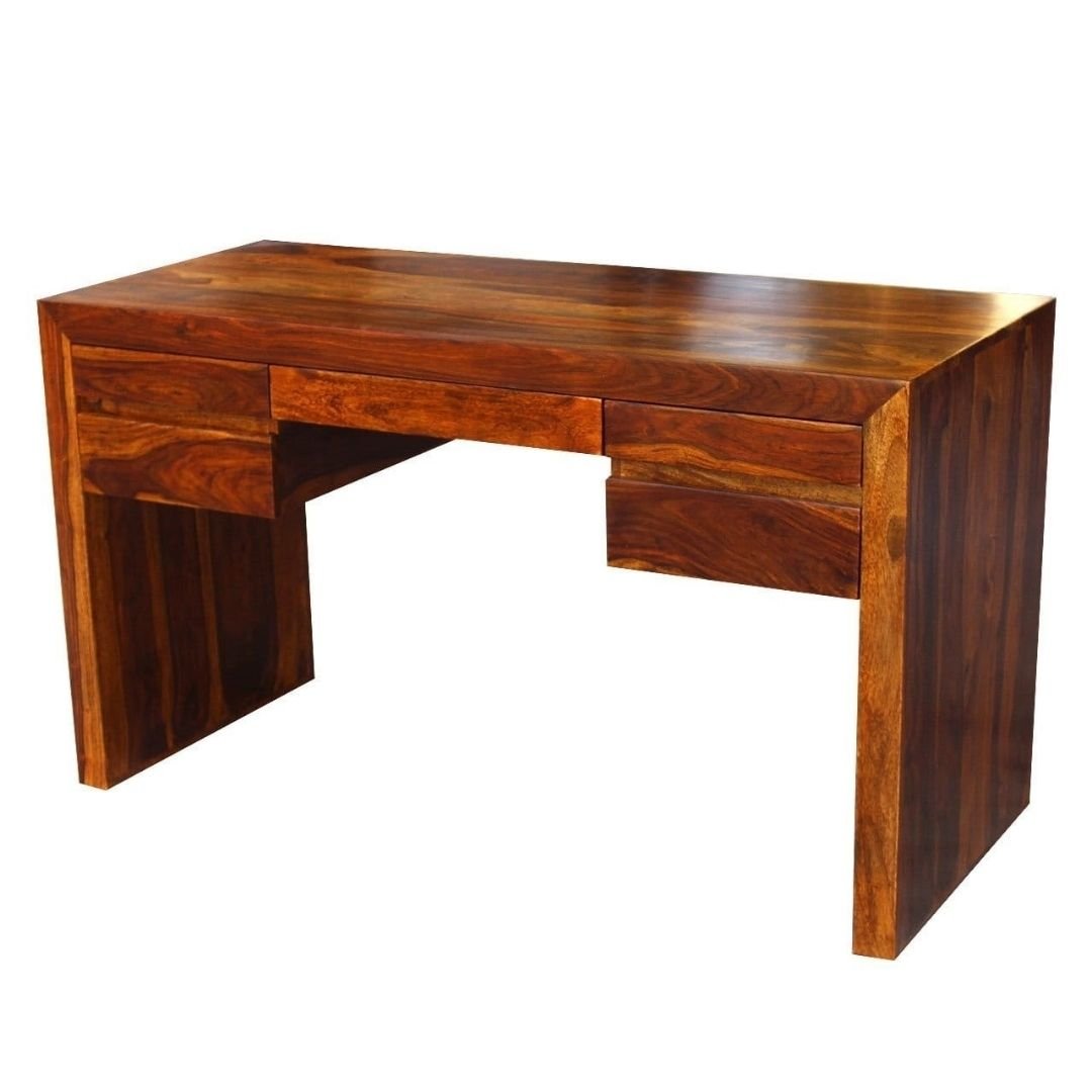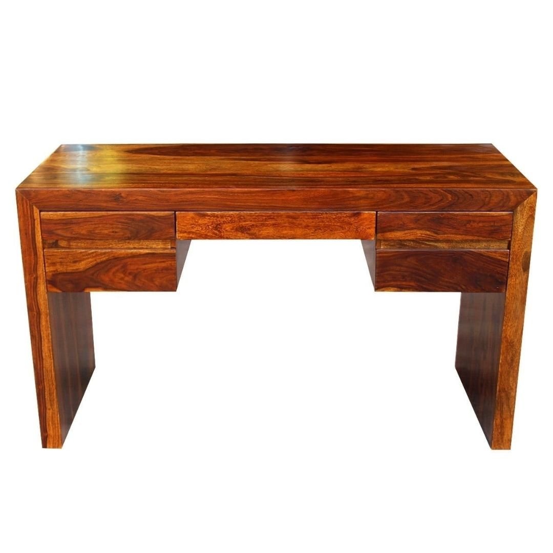Modern Boston Solid Wood Honey Finish Study Table 5 Drawers