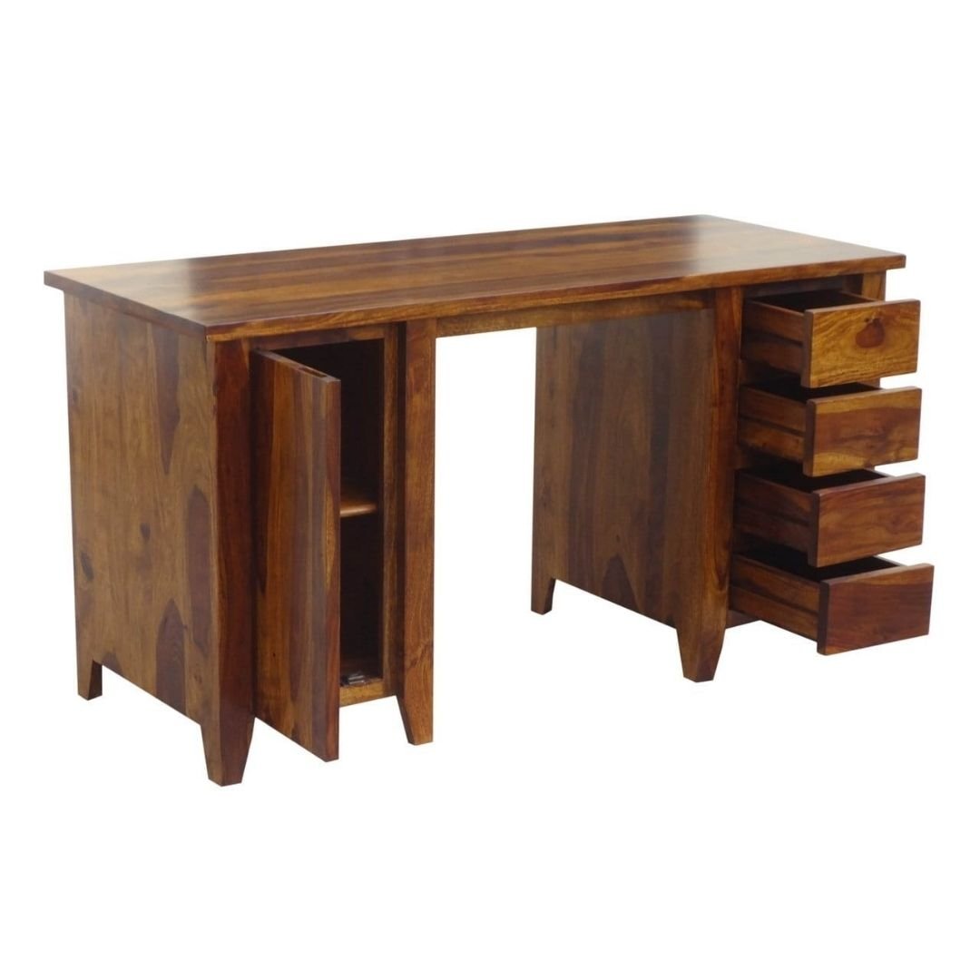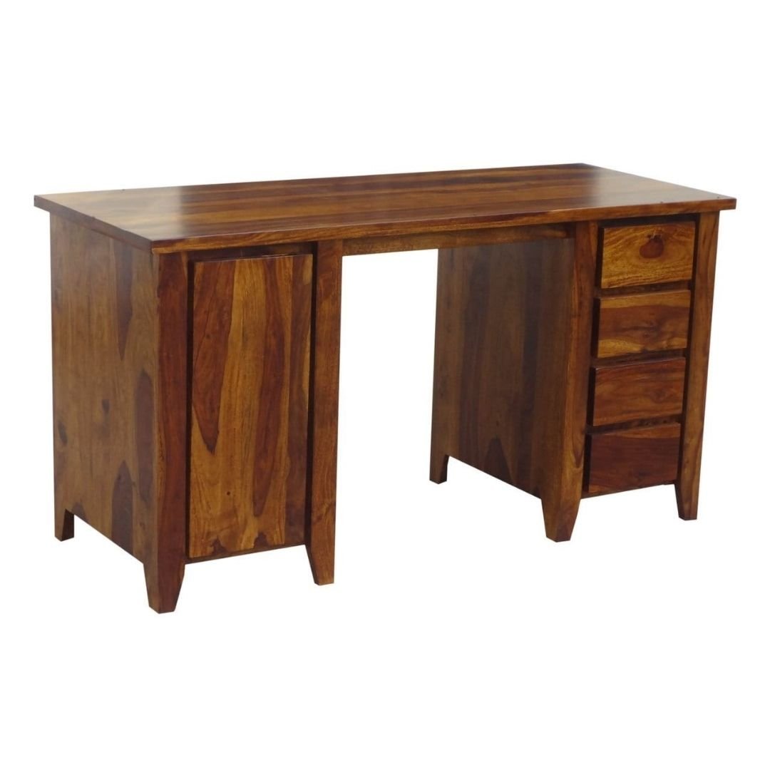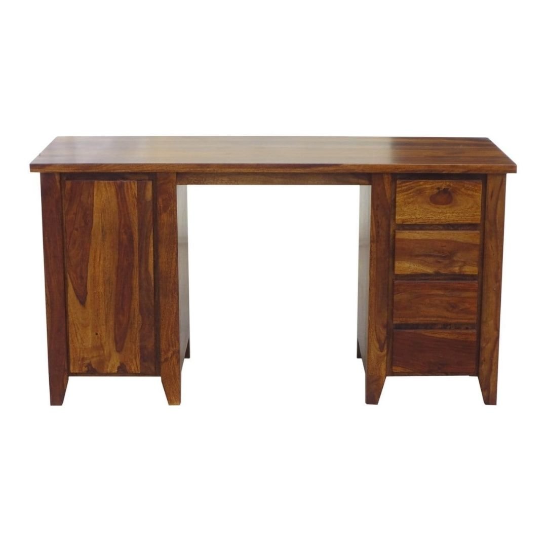 Modern Boston Solid Wood Natural Finish Study Table with 4 Drawers and 2 Shelves