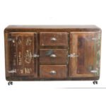 Modern Chrome Solid Wood 2 Doors 3 Drawers Sideboard on Wheels
