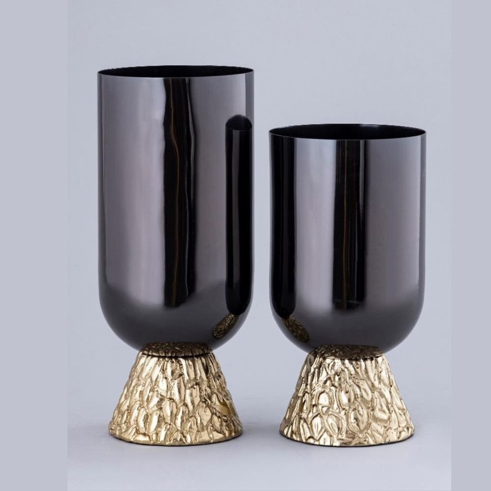 Elegant Dual-Finish Design: Glossy black cylindrical bodies paired with richly textured gold bases for a striking contrast.