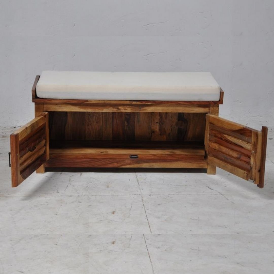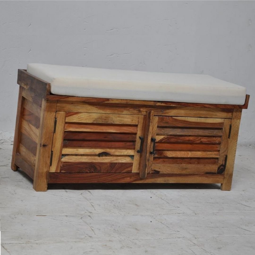 Modern Shutter Solid Wood Storage Chest with seat 2 Door