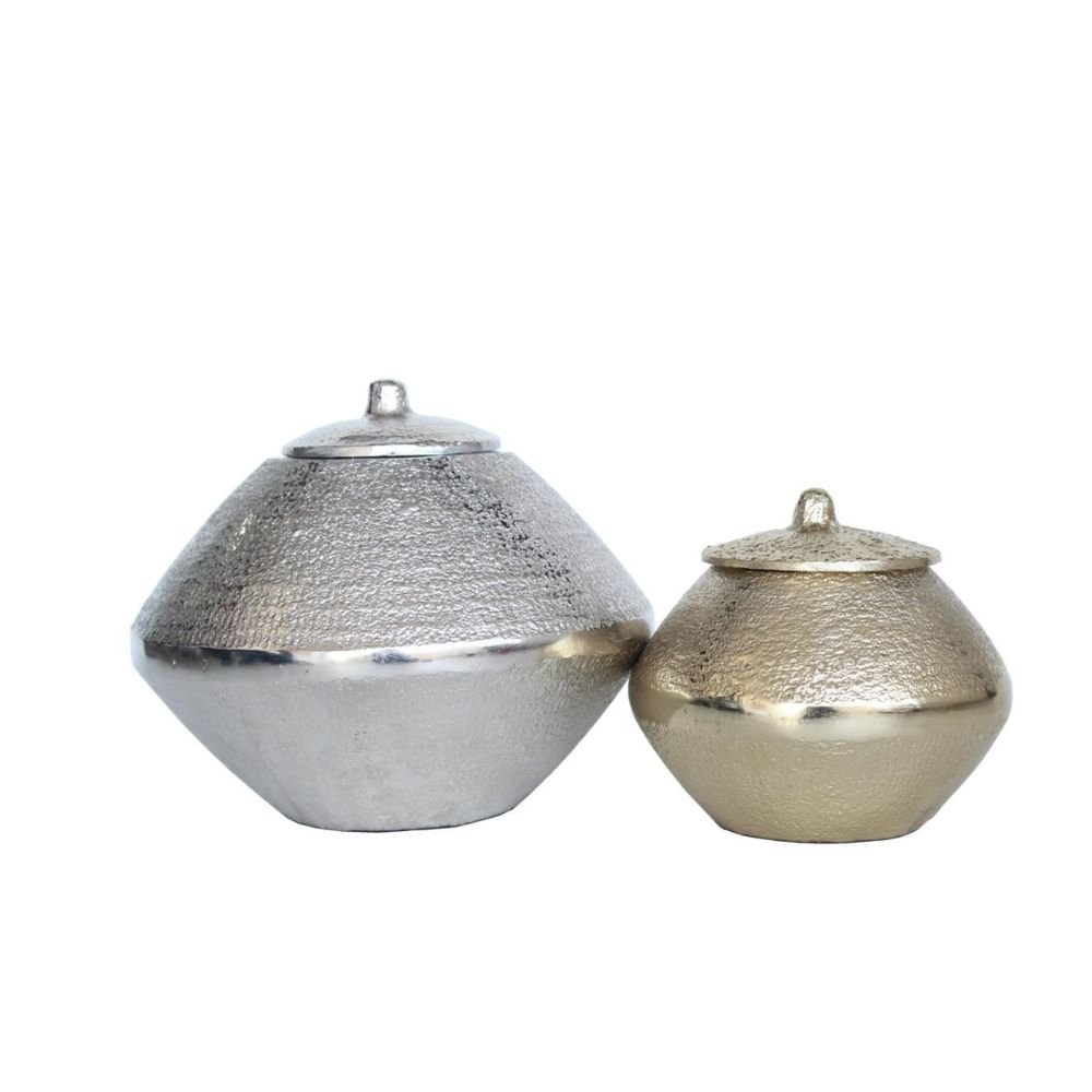 Elegant Dual-Tone Design: Includes one silver and one champagne gold jar for versatile décor styling.
