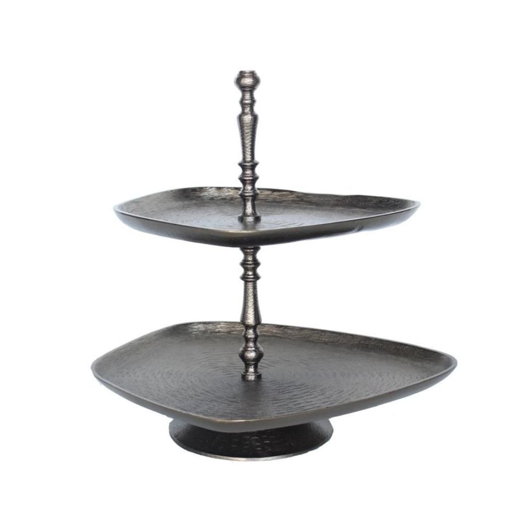 Two-Tier Metal Cake Stand – Antique Black Serving & Dessert Display Stand