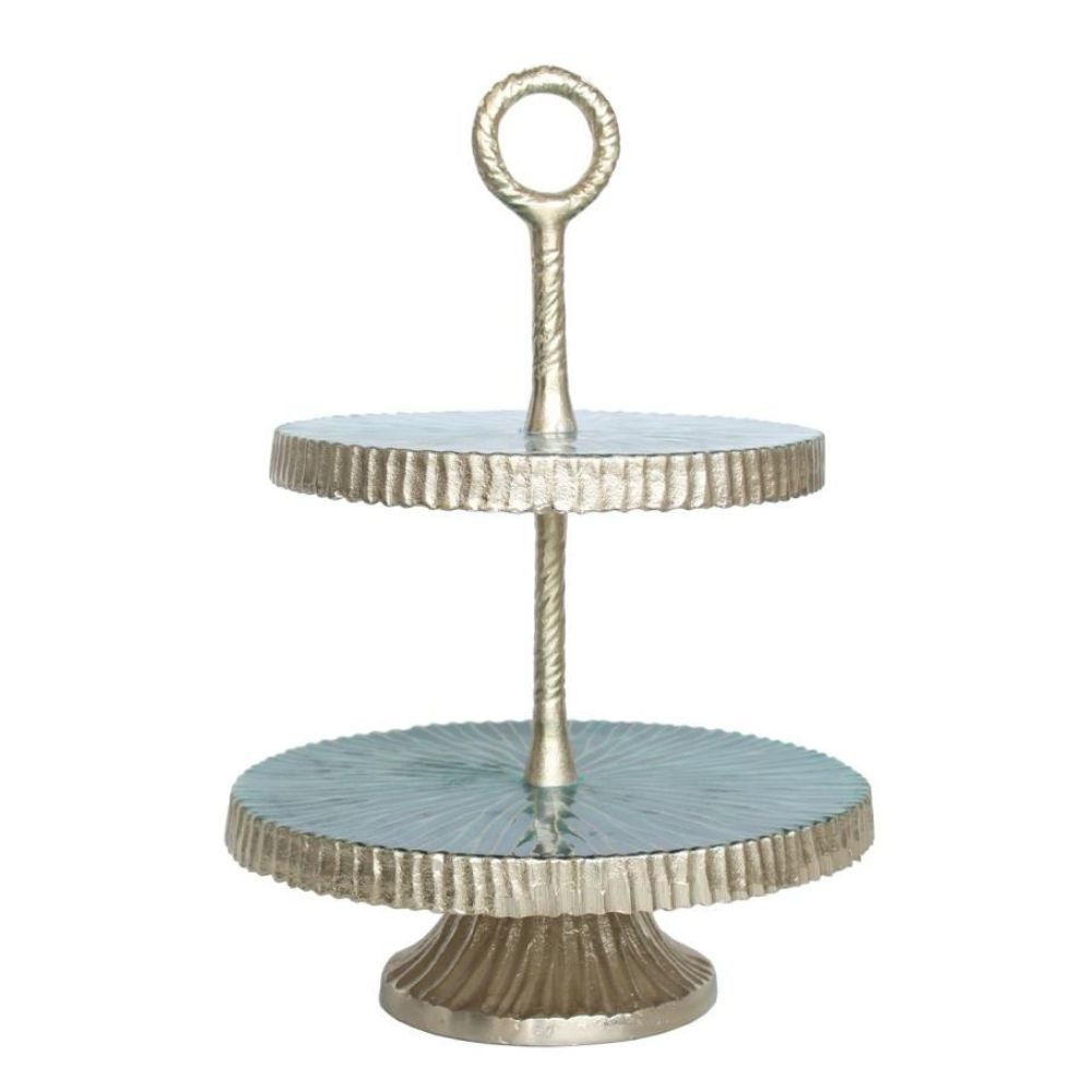 Two-Tier Metal Cake Stand with Glass Plates – Elegant Gold Dessert & Serving Stand