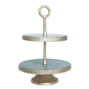 Two-Tier Metal Cake Stand with Glass Plates – Elegant Gold Dessert & Serving Stand